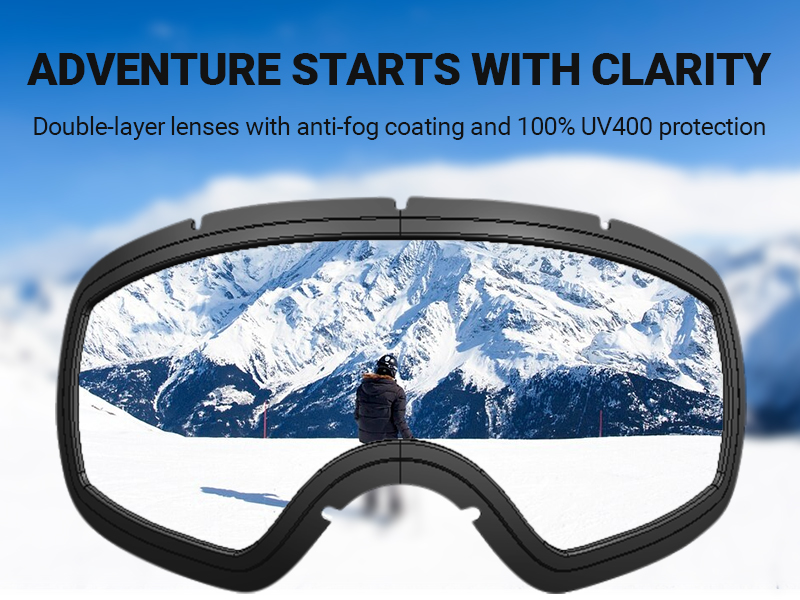 - 【Stay Fog-Free & Safe on the Slopes】 Double-layer lenses with anti-fog coating and 100% UV400 protection keep your eyes safe from UVA, UVB, and UVC rays, safeguarding your eyes while you focus on the mountain, not the sun!
